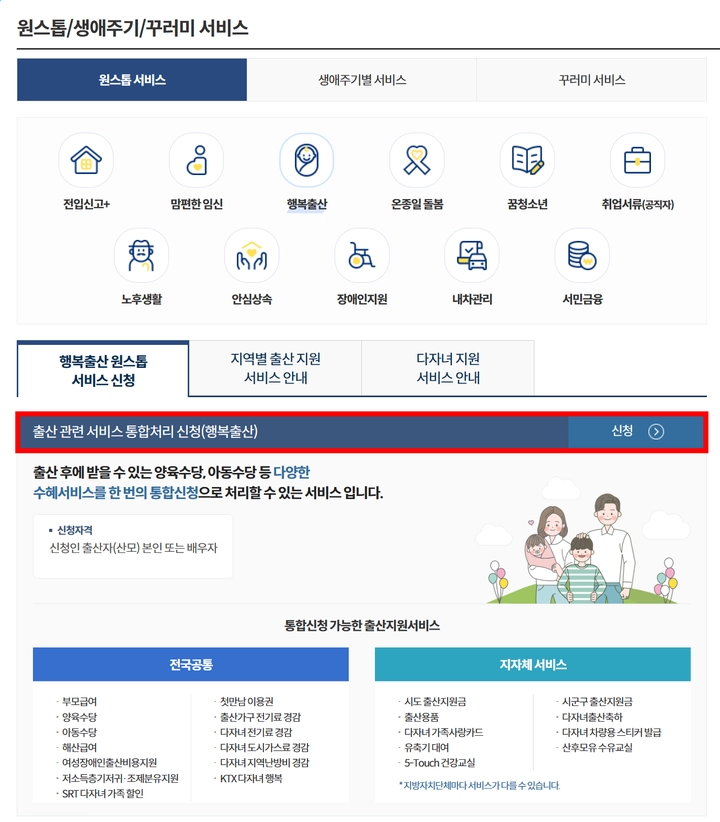 행복출산 서비스는 대한민국 국민이라면 누구나 신청할 수 있습니다. 다만, 일부 지원은 소득과 재산 기준에 따라 차등 지원될 수 있으니 사전에 확인이 필요합니다.